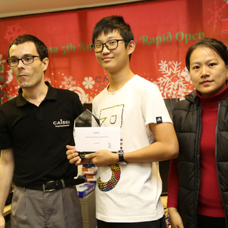 In the the Open we had prizes, trophies and cash, for the top 5. Our Caissa student Scott was, with 5.5 points, best U14 and also 5th place in the Open. Tushar, Andrew and Hui, from Macao, ended with 6 points and on tie-break got 2nd, 3rd and 4th place respectively. Champion with 7 out of 7 was coach David Rivas!