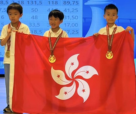 Left, the U8 bronze team medal (Jake Chong, Anderson Fok and Shayne Meng)